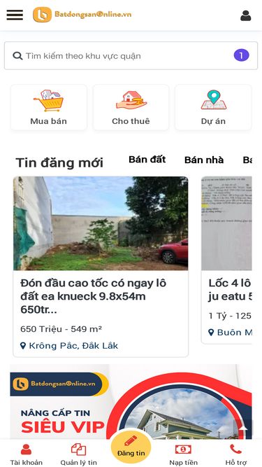 Nền tảng bất động sản uy tín tại Việt Nam. Mang đến nguồn thông tin mua bán và cho thuê nhà đất, văn phòng, chung cư... Cập nhật tin tức bất động sản nhanh nhất và chính xác nhất.