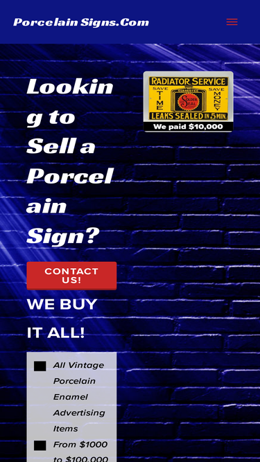 100%A resource for collectors looking for information, values, and history of antique porcelain advertising signs. We are also buyers. Contact us if you are looking to sell old signs.