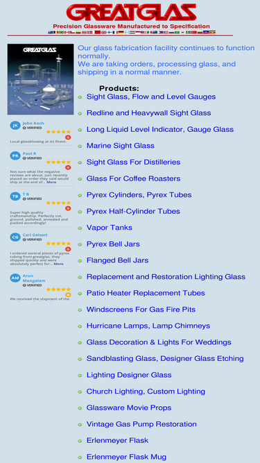 74%greatglas: pyrex tubes, lab glassware, pyrex bell jars, sight glass, lighting glass, pyrex & glass machining. ⇒ 1-800-713-9886 ⇐