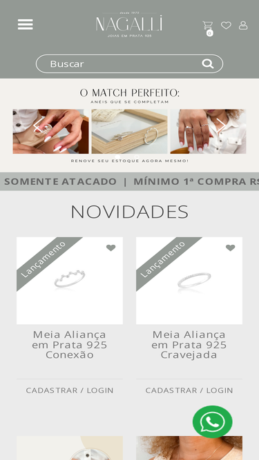 83%O maior atacado de prata 925 . Vendas no atacado Enviamos para todo Brasil
