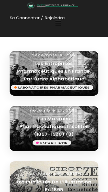 décembre 4, 2017 Laboratoires pharmaceutiques | Edit Les entreprises pharmaceutiques en France, par ordre alphabétique mars 26, 2025 Expositions | Edit Dausse : « Essais sur nos préparations galéniques » mai 21, 2025 Expositions | Edit La Croix-Rouge française et les navires-hôpitaux pendant la campagne de Chine (1900-1901) Expositions décembre 4, 2017 | Edit La chromolithographie et […]