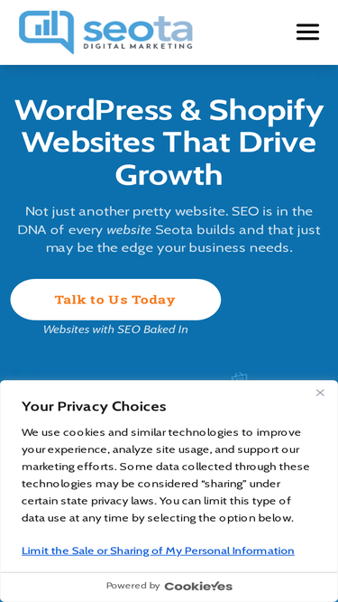 100%The privacy policy for Seota Digital Marketing. In summary, we don't share your data with anyone. We do use Analytics tools that track data.