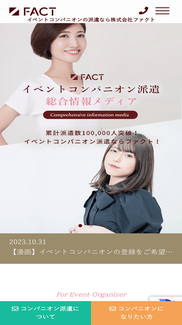 92%累計派遣数100,000人突破!イベントコンパニオンの派遣なら株式会社ファクト!クオリティ満足度No.1のイベントコンパニオンを最短1日で派遣OK!当日の派遣でもお気軽にご相談ください。