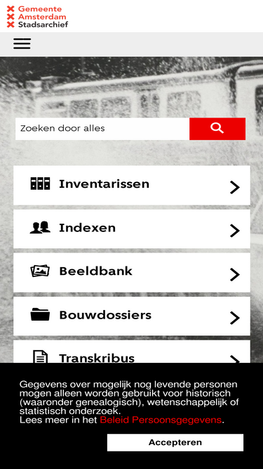 61%doorzoek in de inventarissen de archieven en collecties van het stadsarchief amsterdam. via de indexen kunt u gericht zoeken op personen. in de beeldbank vindt u foto's, prenten en (bouw-) tekeningen.