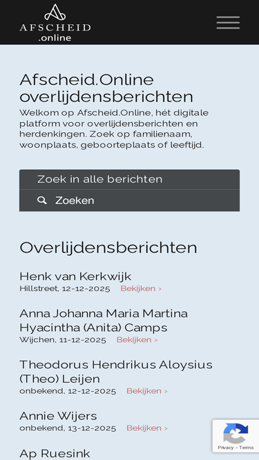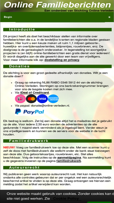 hoofdpagina, project voor het vastleggen van online familieberichten. overlijdensadvertenties, bidprentjes enz.