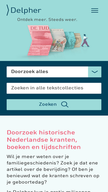 73%ruim 130.000.000 pagina's uit nederlandse kranten, boeken en tijdschriften ✓ in zijn geheel te lezen ✓ digitaal te doorzoeken ✓ gratis toegankelijk ➜ delpher.nl
