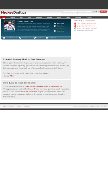 hockeydraft.ca is a complete fantasy hockey pool manager with real-time nhl stats, player profiles, cheat sheets, and more!