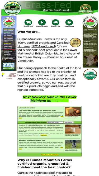 sumas mountain farms is the only producer of 100% certified-organic, lifetime grass-fed & finished beef in the lower mainland of bc. we also offer organic chicken, eggs and pastured pork. located near vancouver, bc.
