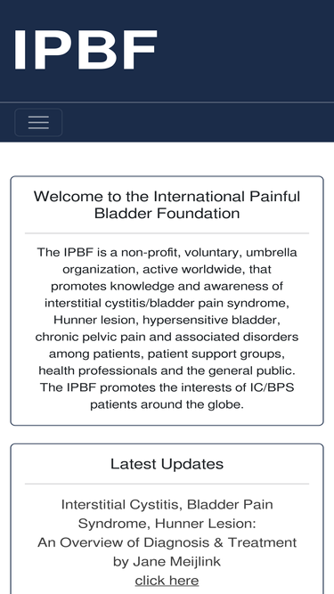 71%the ipbf is a non-profit, voluntary, umbrella organization, active worldwide, that promotes knowledge and awareness of interstitial cystitis/bladder pain syndrome, hunner lesion, hypersensitive bladder, chronic pelvic pain and associated disorders among patients, patient support groups, health professionals and the general public. the ipbf promotes the interests of ic/bps patients around the globe.