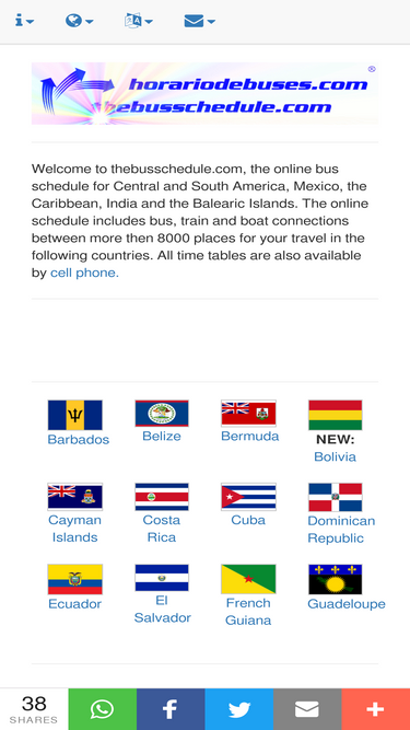 66%horarios en línea de autobús, tren, ferry y barco en méxico, centroamérica, américa del sur, el caribe y las islas baleares. portal de los transportes públicos de viajeros y la movilidad local.