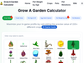 100%Most accurate calculators for Grow A Garden, with tools for 220+ crop values (mutations, weight), pet weight, xp, age and hatch/leveling time.