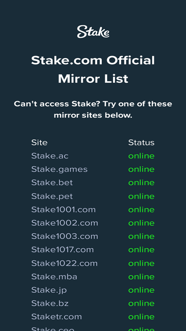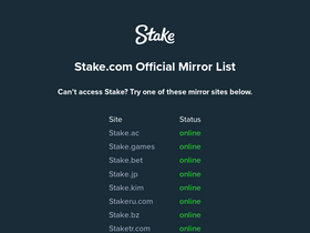 86%Resources for Stake and their official mirrors. Can't access Stake? Try one of these verified mirror sites to continue playing and betting.
