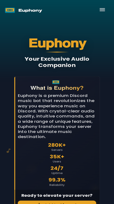 93%Experience high-quality music with Euphony, the ultimate Discord music bot.