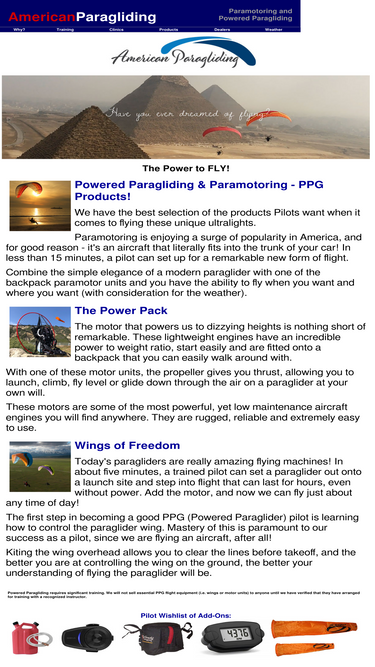 american paragliding - powered paragliding school and paramotoring courses in southern california. powered paraglider, paramotor instruction and sales.