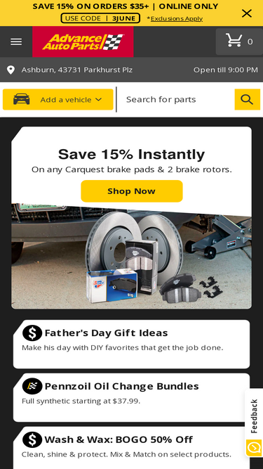 73%Advance Auto Parts is your source for quality auto parts, advice and accessories. View car care tips, shop online for home delivery, or pick up in one of our 4000 convenient store locations in 30 minutes or less.