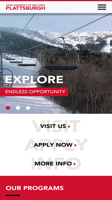 94%SUNY Plattsburgh is a state college in upstate New York offering nearly 60 degree programs and world-class faculty.