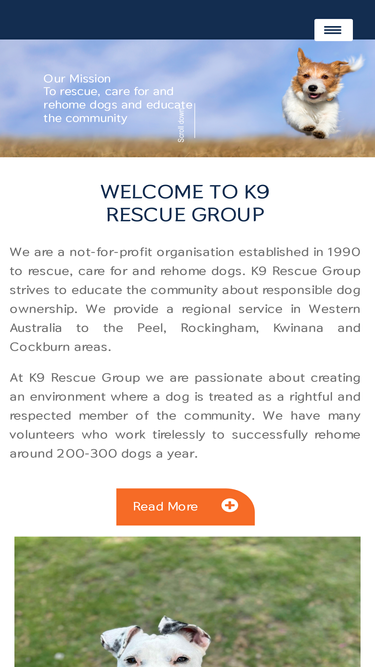 47%we are a not-for-profit organisation established in 1990 to rescue, care for and rehome dogs. k9 rescue group strives to educate the community about responsible dog ownership. we provide a regional service in western australia to the peel, rockingham, kwinana and cockburn areas.
