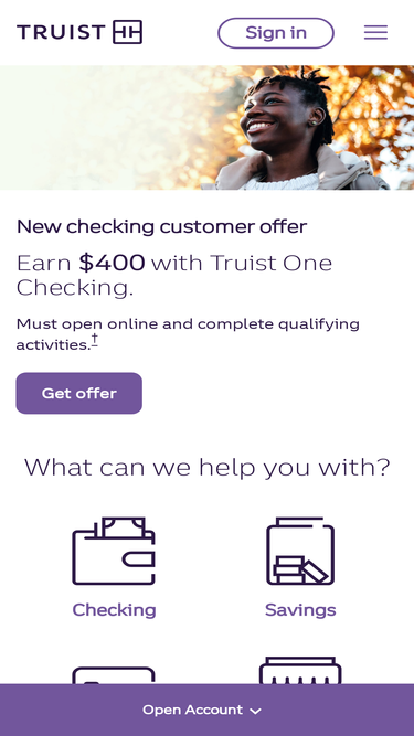 your journey to better banking starts with truist. checking and savings accounts, credit cards, mortgages, small business, commercial banking, and more.
