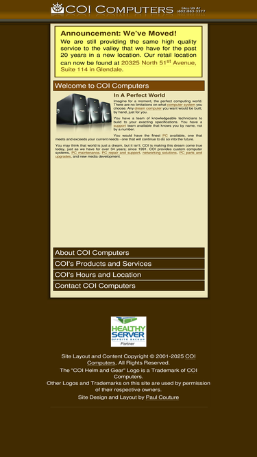 99%coi computers has provided custom pcs and computer repair, support, upgrades, virus and spyware removal and network consulting for over 33 years to glendale, sun city, scottsdale, phoenix and peoria, arizona. consistently named in the top ten technology providers in arizona.