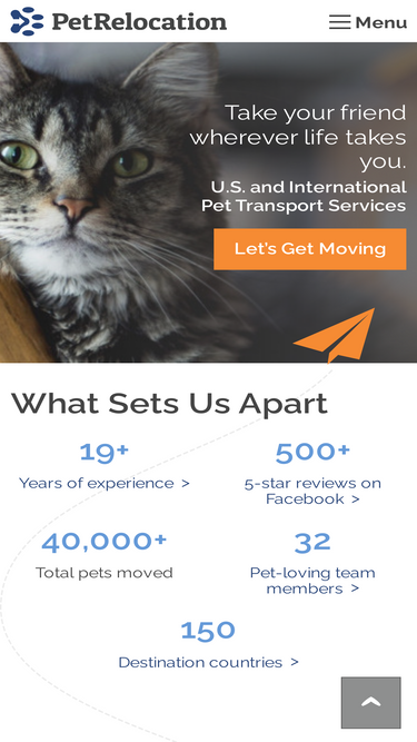 100%Discover expert advice on planning safe pet transport, including tips on crate training, cargo travel, and international pet relocation. Learn how to ensure a smooth move for your furry family member with PetRelocation’s comprehensive FAQs.