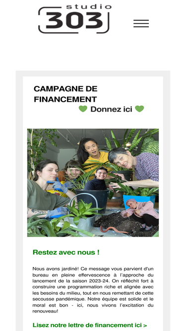 Équipe 303 : Directrice artistique : Kim-Sanh Châu (elle)Directrice générale : Mari Deckers (elle)Adjointe à la direction artistique et générale : Krystina Dejean (elle)Responsable des communications : Abigail Michel (elle)Responsable des services aux artistes et de production : Liam Gover (il)Chargé des ateliers : Caro Morcos (il)Responsables d’atelier saison 25-26 : Béatrice Dutil, Sandrine Kwan […]