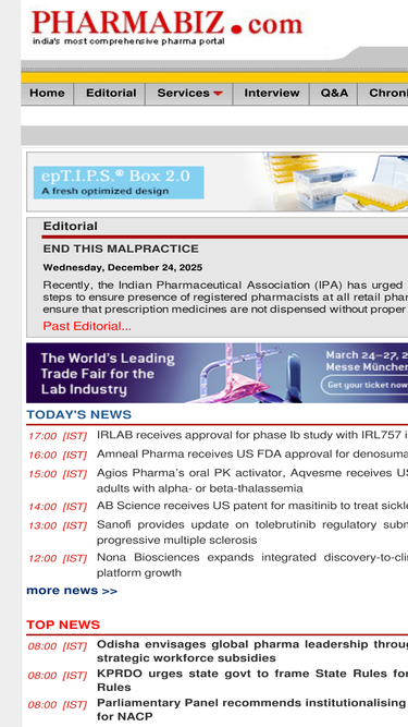 India's most comprehensive portal on pharmaceutical News, Tenders, Patents, Notifications, Projects, Stocks, Drugs and Medicines