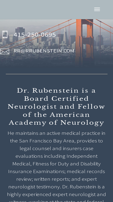 100%Dr. Richard A. Rubenstein, a leading neurologist in the San Francisco Bay Area, provides expert witness testimony in legal cases involving traumatic brain injury, spinal cord injuries, dementia, and more.