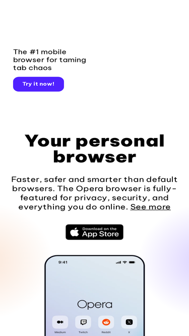 Opera is a secure, innovative browser used by millions around the world with a built-in ad blocker, free VPN, units converter, social messengers, battery saver and much more - all for your best browsing experience. Download Opera browser now and enjoy the Internet once again. Want to know more? Visit opera.com and discover yourself.