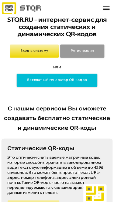 92%STQR.RU - бесплатный сервис для создания статических и динамических QR кодов. Позволяет создавать QR коды быстро, удобно и бесплатно