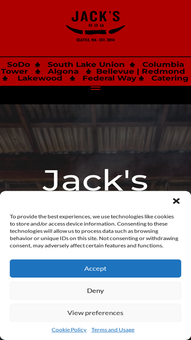 89%Check out our food and drink menus to get an idea of what we have to offer at Jack's BBQ. Menus may vary slightly by location.