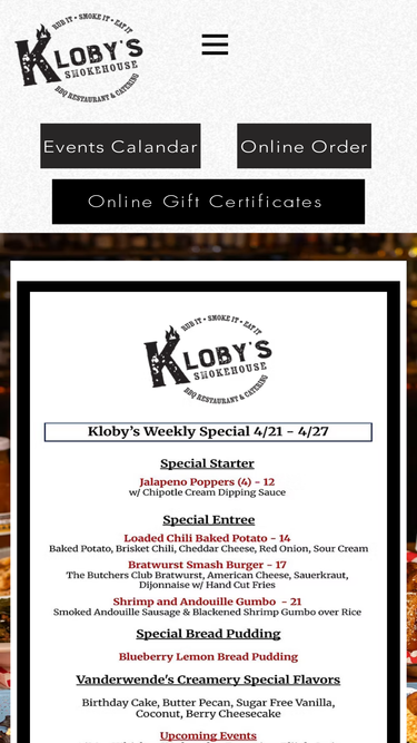 84%Welcome to Kloby's Smokehouse and Whiskey Bar! Experience savory BBQ, local craft beers, and a world-class bourbon menu in a rustic setting. Our pitmasters slow-cook premium meats to perfection, ensuring every bite bursts with flavor. Join us for an unforgettable culinary, craft beer, and bourbon journey.