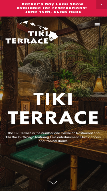 97%The Tiki Terrace is the number one Hawaiian Restaurant and Tiki Bar In Chicago featuring Live entertainment, Hula dancers, and tropical drinks.