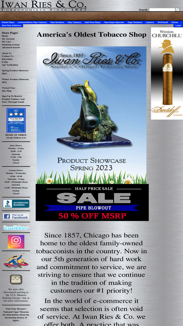 61%iwan ries & co. is the oldest family owned tobacco shop in the country. we specialize in smoking pipes, pipe tobacco, cigar, humidors and the most essential smoking supplies: cigar cutters, colibri lighters, tobacco pouches and more. home of three star pipe tobacco. dunhill white spot pipe retailer of the year.
