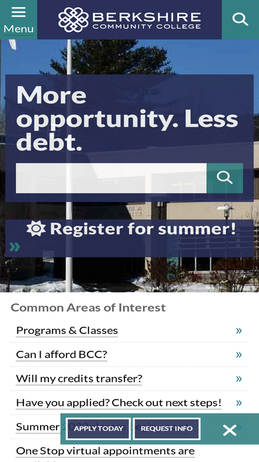 66%free college is here! at berkshire community college, you'll find rigorous and high-quality programs. bcc is a ma liberal arts community college, and critical thinking is at the core of all we do.