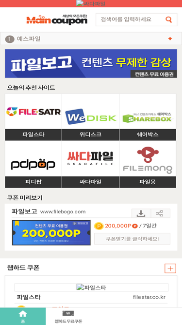 메인쿠폰 웹하드 무료쿠폰 모두 모음 최신영화 방송 드라마 애니 무제한 감상