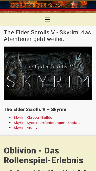 87%portal für spielerweiterungen zu den elder scrolls-titeln 'morrowind' und 'oblivion' nebst spielberichten, personal coaching, tutorialsektion und heimat des sprachfixes oblivion deutsch.