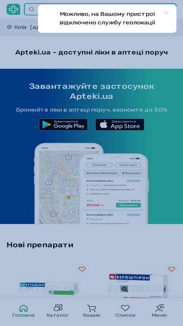 93%Мережа аптек «Бажаємо здоров'я» ⭐️ Каталог ліків, медичних товарів та доглядових засобів ➕ Доступні ціни, акції та знижки ✅ Зручне бронювання ліків онлайн та самовивіз з найближчої аптеки ❤️ Якісний сервіс для кожного клієнта