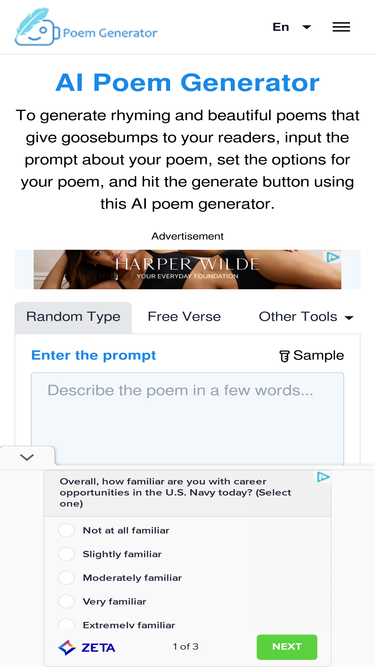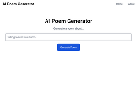 A free AI poem generator that generates rhyming poems. Our online AI poem maker can write you a beautiful rhyming poem on any subject.