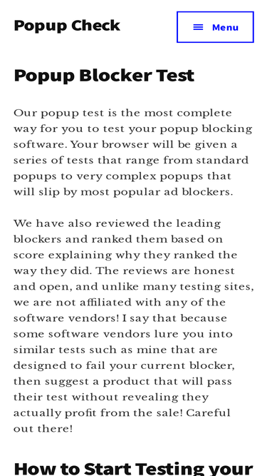 94%free popup blocker test to check your pop up blockers ability to block pop ups.