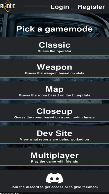 80%Guess the operator, weapon or map in a daily challenge based on the game Tom's Clancy Rainbow Six: Siege made by Fans