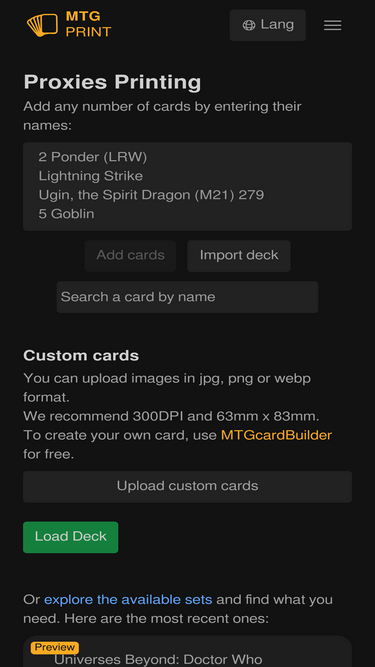 We sell High quality MTG proxy cards, on demand for home games or casual LGS events.