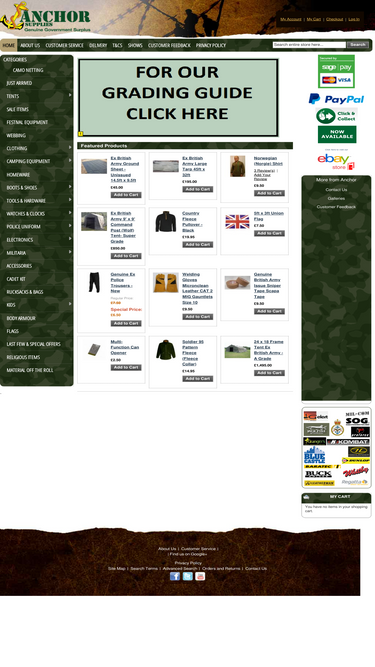 100%anchor supplies are a british army and military surplus store in derbyshire and nottinghamshire selling genuine british army surplus clothing and supplies.