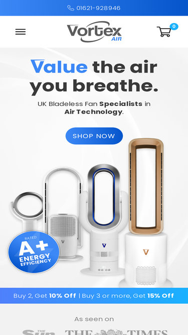 85%Experience cool, quiet comfort with Vortex bladeless fans, designed for safety, style and performance with our latest blade free technology.
