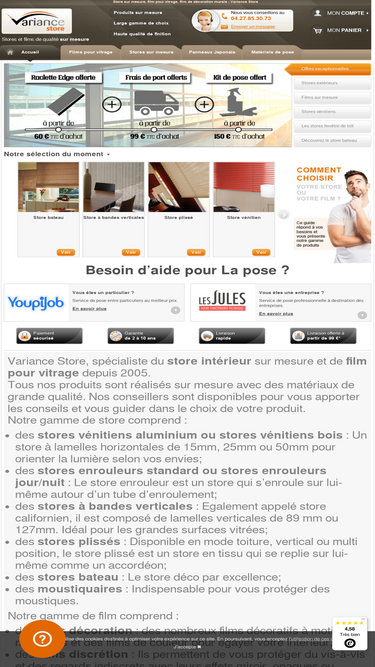 84%retrouvez sur variance store l'essentiel des stores sur mesure et de haute qualité. nous faisant des stores californiens, des stores enrouleurs mais aussi des stores vénitiens et des stores bateau. pour fenêtres, portes fenêtre, vérandas ou même fenêtre de toit. sont disponibles aussi sur variance store des films pour vitrages décoratifs, anti vis a vis ou solaire découpé sur mesure au mm près.