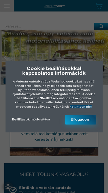 100%A Veterán Autóalkatrész Webshop Magyarország egyik első, elsősorban veterán járművek motorikus, belső alkatrészeinek forgalmazásával foglalkozó áruháza. Széles kínálattal várjuk a veterán autó tulajdonosokat, felújító magánszemélyeket és cégeket egyaránt. Ha nem találja meg a keresett alkatrészt, beszerezzük Önnek.
