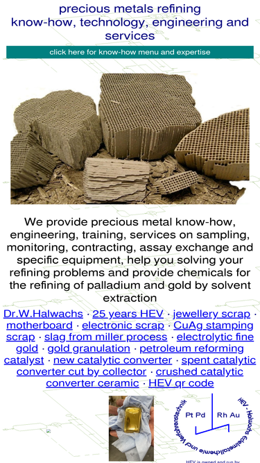 100%hev consulting on precious metal refining (know-how, engineering, services) and chemical engineering