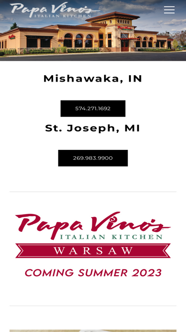 Welcome to Papa Vino's Italian Kitchen, home to classic Italian favorites, thoughtful wine selections, and signature cocktails in a relaxed, friendly atmosphere. Join us for lunch, dinner, or special events.