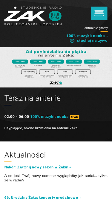 100%Ramówka Studenckiego Radia Żak. Lista/plan audycji - Sobota