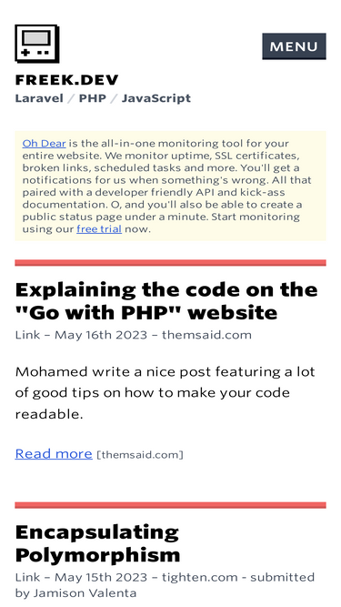 freek.dev, ralphjsmit.com benzeri en popüler 4. site. codewithsusan.com ise beşinci sırada.freek.dev ve codewithsusan.com, Ocak 2026 için sırasıyla %competitor_4_visits% ve %competitor_5_visits% ziyaret aldı.