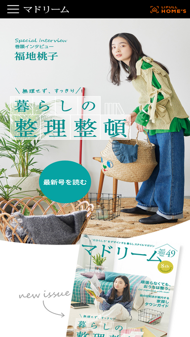 74%インテリアにお部屋探し、自分自身を形づくる、暮らしのスタイル。日常を素敵な毎日に変えるカギは、自分の暮らしを気に入ること。もっと楽しく、自分らしくなれる、等身大の暮らしのアイディアを提案します。